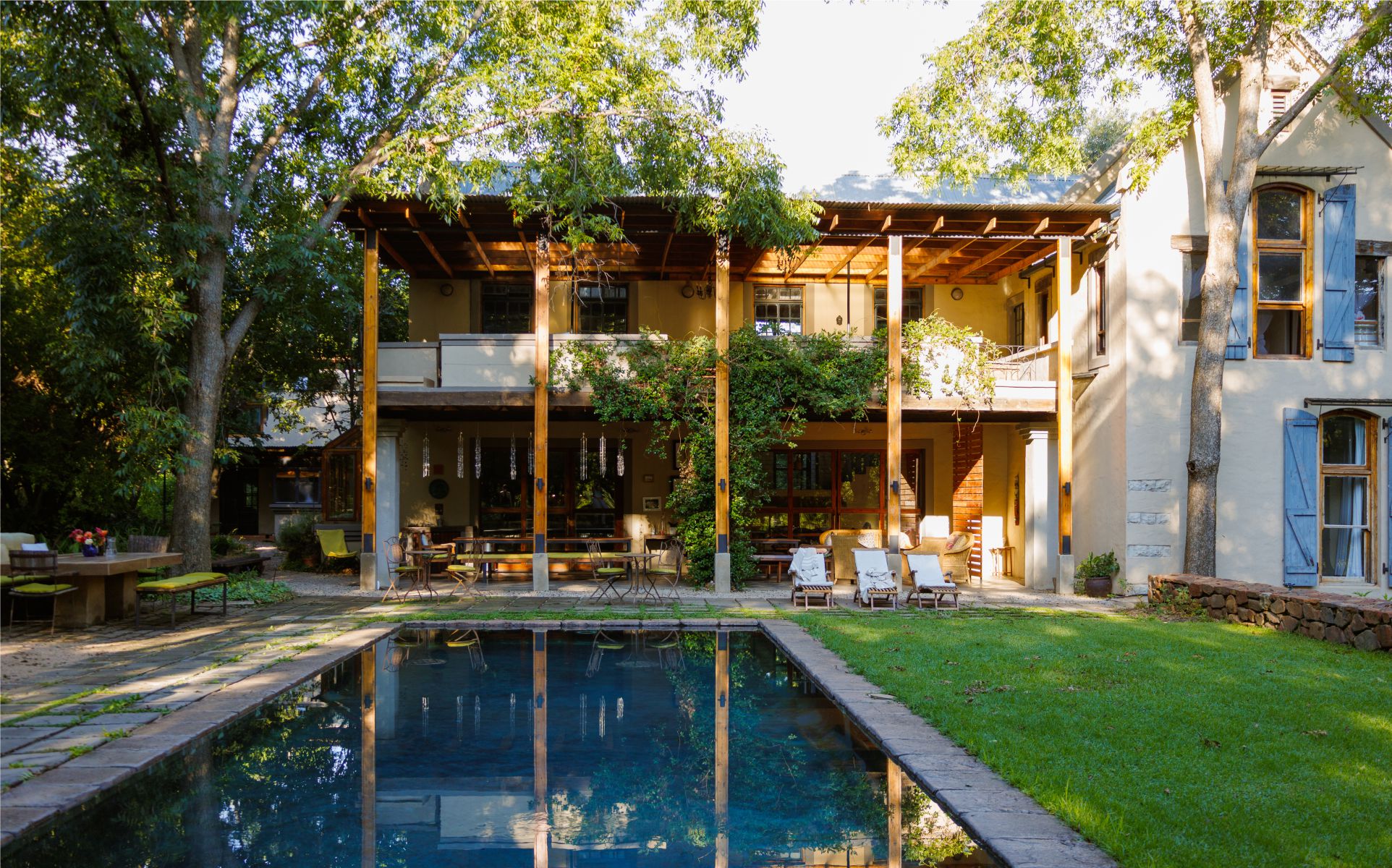 Melody Hill is a beautiful setting for retreats, functions and private getaways. The clasical French style farmhouses have been transformed into spacious villas surrounded by nature. The five venues, can be booked seperately or used in conjunction. Our grounds include a studio, swimming pool, labyrinth, river, orchard, dam, vegetable gardens, bonfires, lawns and access to a mountainside nature walk.