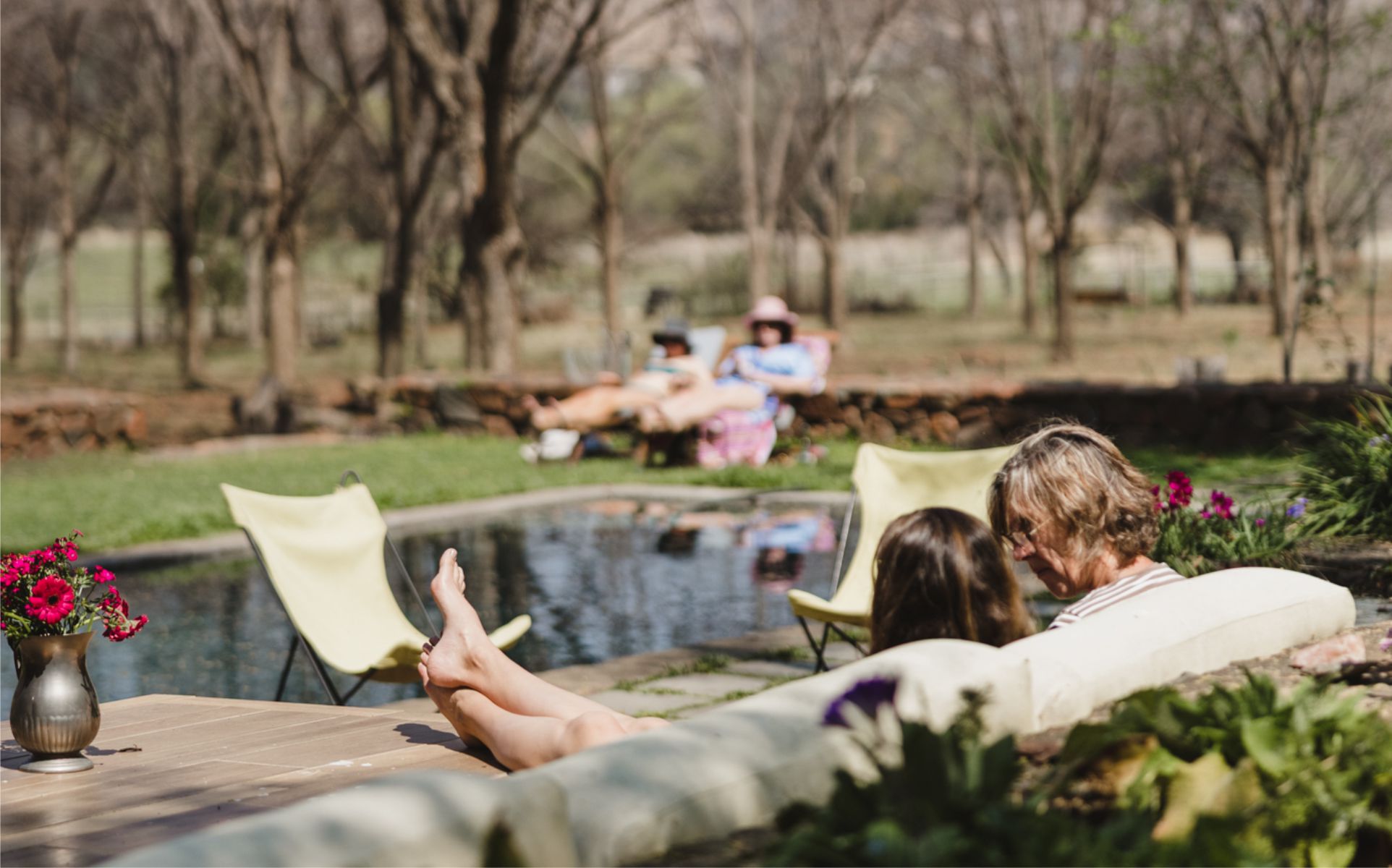 Melody Hill is a country estate set in a secluded pecan-nut orchard, on the banks of the Magalies River. Nestled in a beautiful valley teaming with birds and indigenous plant life. Home to Nag-apies, Porcupines, Vervet Monkeys and Hornbills. In summer the Pecan trees create a lush green forest canopy. Loosing their leaves in winter, the sunlight streams in with views of the surrounding hillsides. Spring and autumn offer all of their wonderful colours.